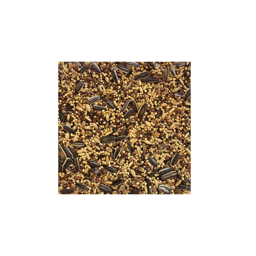 Contains a high-quality blend of: Barley, White Millet, Hungarian Millet, Sunflower, Wheat, Hulled Oats, Rape Seed, Fodder Radish and Linseed.